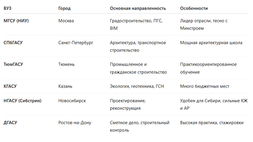 Выбрать вуз — значит выбрать путь на годы вперёд. Особенно если речь о профессии инженера-строителя, проектировщика или архитектора. Где дают сильную базу, какова стоимость обучения и где есть реальные перспективы после диплома? Разбираю как человек, сам закончивший строительный вуз, поработавший в крупных компаниях, и знающий изнутри, чем отличается учеба в МГСУ от ТюмГАСУ или НГАСУ. На 2025 год наиболее сильными считаются: ✅ С кем сотрудничает вуз: Есть ли у него партнёры — девелоперы, подрядчики,...