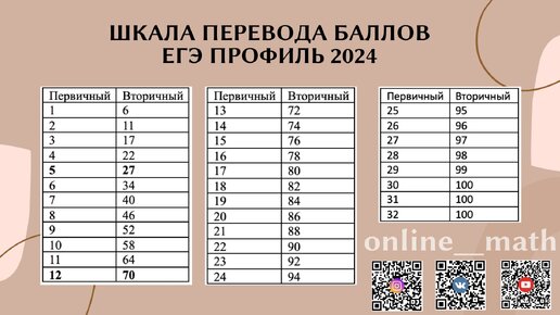 ПЕРЕВОД БАЛЛОВ ЕГЭ ПРОФИЛЬ 2024 ПО МАТЕМАТИКЕ: новая шкала