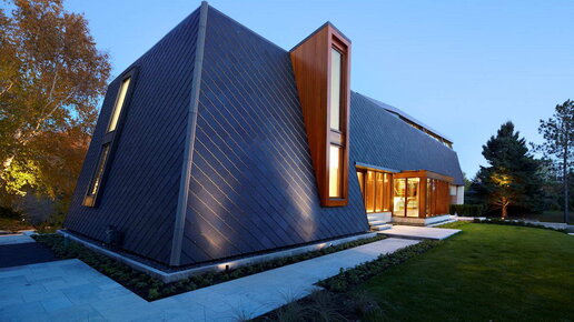 К северу от Торонто расположена идиллическая сельская община, застроенная домами различной архитектуры ещё в 60-х годах прошлого века. Этот новый дом построен ровно на «пятне» снесённого старого, чтобы не нарушать сложившийся за много лет окружающий ландшафт. Смелая современная архитектура дома перекликается с существующими соседними зданиями, имеющими традиционную форму с высокими крышами. Наклонная стена, отделанная чёрным сланцем, с некоторых точек выглядит как крутая и высокая крыша. Извилистая...