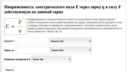 Напряженность электрического поля. Калькулятор онлайн.