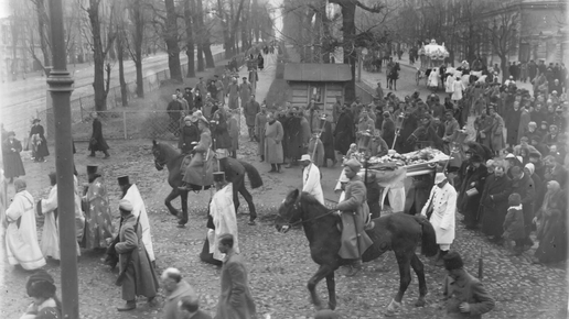 На фотографиях – похороны в Киеве человека, который считается классиком украинской литературы. Более того, он – один из создателей искусственного украинского языка, поднаторевший в превращении полонизмов в «українські іменники, прикметники, дієслова». Звали его Иван Нечуй-Левицкий. Однако упражняться в сарказме, вспоминая его, не станем. Человек он был неплохой, хоть и чудаковатый. Нрав имел покладистый, но прожил холостяком, поддаваясь на уговоры других лиц, каждый раз умевших убедить, что избранница – не та: либо слишком красива и легкомысленна, либо слишком богата, либо нехороша внешне...