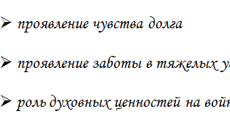 Из нескольких проблем, поставленных А. Платоновым, я выберу проблему проявления чувства долга. Ответственность важна в любое время, а во время тяжелых испытаний она возрастает. Автор описывает поведение бойцов в ночное время – накануне следующего боя. Одинцов, с желанием ожидая завтрашний бой, думал о том, что нужно защищать народ, который надеется на «нерушимую силу солдата». Используя внутренний монолог, автор раскрывает сокровенные мысли бойца о том, что советских людей «учили жить серьезно». Сейчас это чувство ответственности было самым главным...