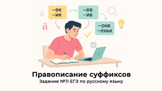 Задание №11 по русскому языку проверяет, насколько вы умеете правильно писать суффиксы в разных частях речи — существительных, прилагательных и глаголах. На первый взгляд кажется, что правил слишком много, но при системном подходе эта тема быстро становится понятной и логичной. Это задание приносит 1 первичный балл, но именно такие «мелкие» задания часто решают исход экзамена. Грамотное владение суффиксами поможет вам писать без ошибок и уверенно пройти часть 1 ЕГЭ. В типичном варианте задание выглядит...