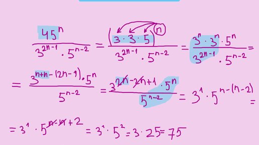 Сегодня разберём один из видов номера 20 ОГЭ по математике. Напомню, что номер 20 входит во вторую часть экзамена и требует развернутого решения. Для решения данного номера были использованы разложение на множители числа 45=3*3*5 и свойства степени...
