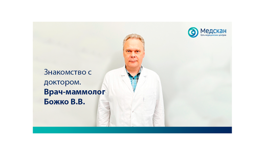 Божко Владимир Викторович – врач-маммолог, онколог, врач ультразвуковой диагностики, кандидат медицинских наук, член Российского общества хирургов, онкологов, участник Российских и международных конференций по онкологии и колопроктологии. Врач высшей категории со стажем более 28 лет. Владимир Викторович владеет современными методиками проведения хирургических вмешательств в области общей хирургии, онкологии, маммологии и проктологии. За свою профессиональную деятельность выполнил более 5 тысяч операций...