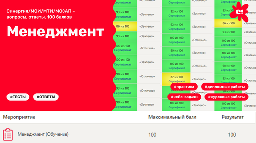 Менеджмент (Синергия/МОИ/МТИ/МОСАП – вопросы, ответы, 100 баллов)