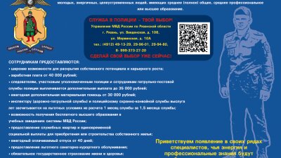 УМВД России по Рязанской области осуществляет отбор на службу в органы внутренних дел молодых, энергичных, целеустремлённых людей, имеющих среднее (полное) общее, среднее профессиональное или высшее образование (18+). Сотрудникам предоставляются: