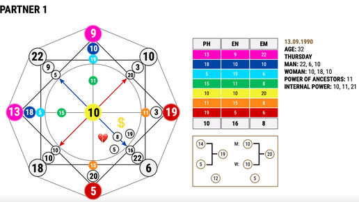 Онлайн калькулятор Матрица Судьбы, Чакральный анализ, Квадрат Пифагора