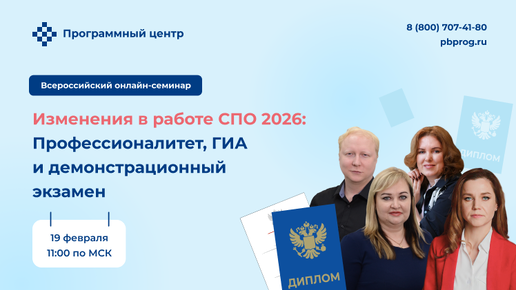 С 1 сентября 2026 года вступают в силу изменения в Федеральный закон «Об образовании» № 253-ФЗ. Эти изменения напрямую затрагивают работу СПО и требуют от колледжей и техникумов заранее перестроить управленческие и образовательные процессы. Чтобы спокойно встретить 1 сентября 2026 года, колледжам и техникумам нужно подготовиться уже сейчас. В этом поможет Всероссийский онлайн-семинар — «Изменения в работе СПО в 2026: профессионалитет, ГИА и демонстрационный экзамен». С этой даты вступят в силу изменения в Федеральный закон «Об образовании в Российской Федерации» № 253-ФЗ...