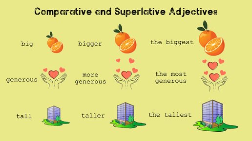 Hello, my friends! How are you doing? Сегодня у нас будет грамматическая тема, а именно – степени сравнения прилагательных. Для начинающих тема будет информативной, а кто уже знает что и как образуется, то повторение думаю будет не лишним. Не буду долго задерживать. Если вы готовы, то мы начинаем! Сравнительная степень и превосходная степень – Comparative and Superlative Adjectives Прилагательные в английском делятся на простые и сложные, основываясь на количестве слогов. Ну и конечно, без исключений тут не обошлось, но об этом позже...