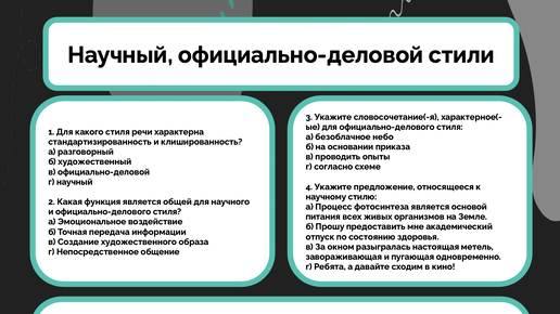 8 класс. 11 класс. Научный и официально-деловой стили. Рабочий лист.