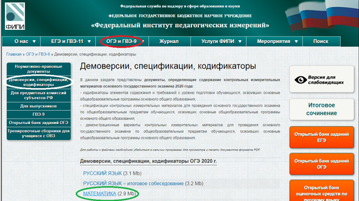 И снова мы собрались вместе на канале. Доброго здоровья и хорошего настроения, уважаемые читатели! В настоящей статье я проведу Вас по официальной шпаргалке, которая выдаётся каждому ученику на экзамене по математике за 9 лет обучения в школе вместе с контрольно - измерительными материалами. Эту шпаргалку я скачала с сайта ФИПИ (Федеральная служба по надзору в сфере образования и науки "Федеральный институт педагогических измерений", картинка 1) Я расскажу о том, в каких заданиях наиболее вероятно можно будет применить указанные формулы, приведу примеры заданий...