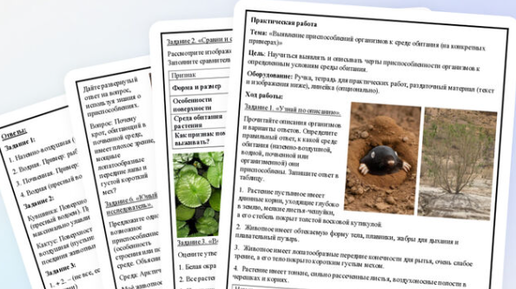 Практическая работа "Выявление приспособлений организмов к среде обитания (на конкретных примерах)"
