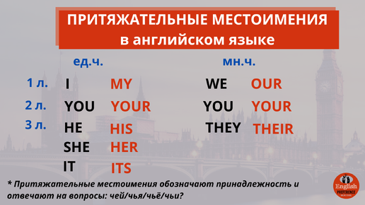 ПРИТЯЖАТЕЛЬНЫЕ МЕСТОИМЕНИЯ в английском языке