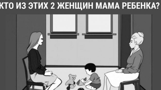 Предлагаю вам быстрый и интересный психологический тест. Он расскажет вам о ваших ярких чертах личности, какой у вас склад ума, какие способности. Чтобы его пройти, необходимо лишь изучить картинку, включить свои психологические способности или интуицию и ответить на вопрос:  Кто по вашему мнению из этих двух женщин мама мальчика, который играет на полу в игрушки?  Я советую вам рассмотреть все детали рисунка, внешний вид женщин, их одежду, выражение лица.  Этот тест не случайно сделан в черно-белых тонах, чтобы вы не отвлекались на цвета и сосредоточились на ситуации...