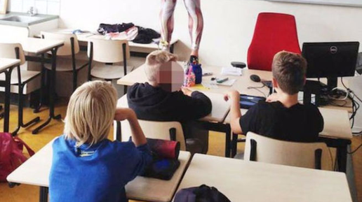 В Голландии в младшей школе прошёл незаурядный урок биологии. Во время рассказа о строении тела человека учительница забралась на стол и скинула с себя одежду. На учителе остался обтягивающий костюм, так что она смогла показать все необходимое ученикам...