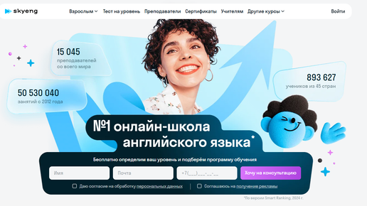 Формат: онлайн Описание: одна из первых онлайн-школ английского языка в России, работает с 2011 года. Все занятия проходят по видеосвязи, программа подбирается под цели ученика, особое внимание уделяется разговорной практике.