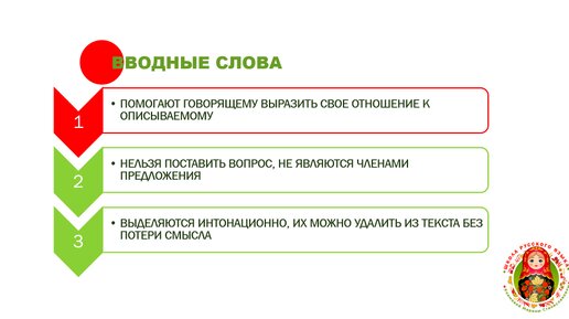 Обрати внимание на вводные слова и их значения! Не являются вводными Очень важно запомнить эти вводные слова! Если у тебя остались вопросы, ты можешь задать их в сообщении под уроком. Если тебе все понятно, подписывайся на канал и не забудь поставить лайк...