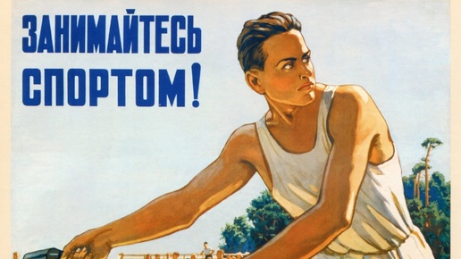 Советские власти вовсю старались поддерживать физкультуру и спорт среди граждан СССР, понимая что в здоровом теле - здоровый дух. На рабочих местах в обязательном порядке проводилась пятиминутная производственная гимнастика, а агитплакаты пропагандировали катание на коньках, лыжах и туристические походы вместо посиделок за игрой в карты. Во дворах ребятня летом играла в футбол, а зимой - в хоккей, существовало множество бесплатных детско-юношеских секций со спортивным уклоном. В то же время спорт...