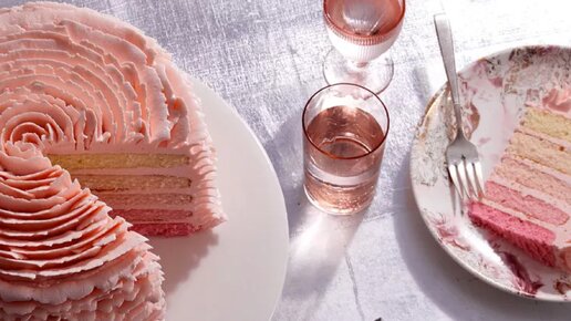 Фантастический клубничный торт-роза с омбре внутри от Марты Стюарт*