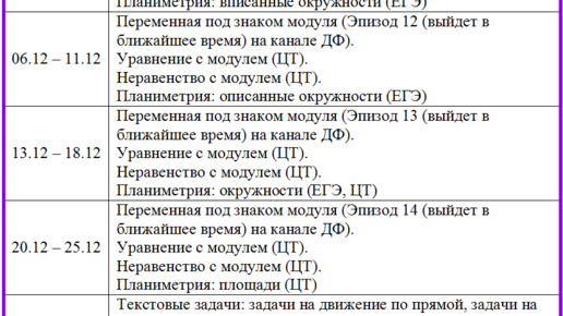 Понедельный план самоподготовки для ученика 10 класса по математике. Что надо успеть пройти за год