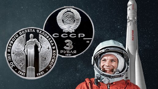 Путь к звездам – в монетах СССР. Часть 2. 3 рубля 1991 года «30-лет первого полета человека в космос»