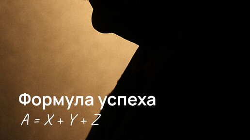 Формула успеха. A = X + Y + Z А вам знаком афоризм Эйнштейна о «формуле успеха»? A = X + Y + Z, A — это успех, X — упорная работа, Y — игра, Z — умение держать язык за зубами.» Эйнштейн сказал это в беседе с журналистом, в своей характерной ироничной манере, но формула стала очень популярной. Расшифровка формулы: X — упорная работа. Эйнштейн подчёркивал, что без труда, исследования и настойчивости не будет никакого результата. Y — игра. Для Эйнштейна игра — это не «развлечение», а радость от процесса, то самое «детское удивление», которое движет исследователя...