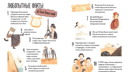 Она родилась в один год с Эйнштейном и Чарли Чаплиным. Была фантастически гибкой. Аню называли колдуньей, она чувствовала воду и всегда знала, где рыть колодец. Еще Анина жизнь показывает, как важно знать языки (можно переводить стихи и зарабатывать), а поэзия пропитана любовью к родине. Когда все товарищи разъехались в эмиграцию, Ахматова осталась. Этот бред не мой, я просто привожу выдержки из детской книги про Ахматову. Несколько лет назад к юбилею Анны Андреевны в издательстве "Альпина Дети" вышла книжка «Чему я могу научиться у Ахматовой»...