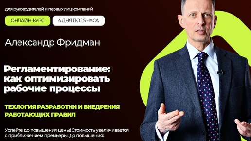 Данный курс Вы можете приобрести со скидкой 99%. Для этого напишите мне в телеграм - НАПИСАТЬ __________________________________ Описание: Как исключить ошибки персонала? Не научившись использовать регламенты в качестве своеобразных "усилителей" и "арматуры", вы рискуете погрязнуть в текучке, ценных указаниях инструктивного уровня и сверхплотном контроле. Ключевые аспекты работы надо формализовать, обеспечить единообразное понимание и отсутствие возможности для противоречивых истолкований...