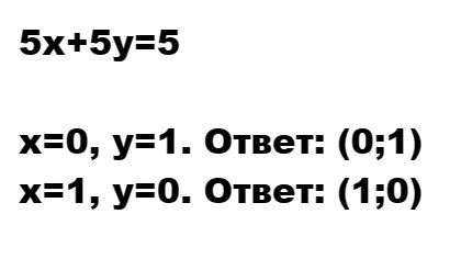 Таких ответов на линейное уравнение может быть бесконечное количество. Как решать линейные уравнения? Разберем как решать данные уравнения на примере уравнения: 5x+5y=5. Найти нужно, чему может быть равен x и y.