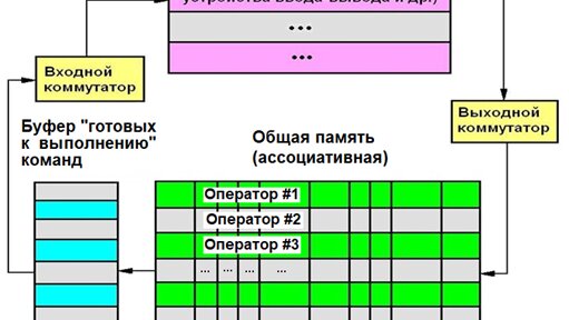 Сегодняшняя публикация будет длиннее обычной (примерно вдвое) из-за того, что мы впервые попытаемся разобрать не просто идею, но сконструировать (в самых общих чертах, конечно) схему параллельного вычислителя (и обсудить достоинства/недостатки предложенной конструкции). Итак, пришло время, базируясь на общих положениях согласно рис. 6, попробовать сконструировать наиболее общую схемы параллельной вычислительной системы (один из вариантов её - рис. 7). Как видно из рис. 7, предложенная схема (фактически...