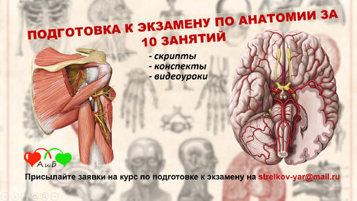 Дорогие друзья! Анатомия – наиболее объемный предмет, который изучают студенты медицинских вузов. Примерно 30% студентов не могут сдать анатомию с первого раза. Большой объем материала пугает и отталкивает. Специально для более продуктивной подготовки к экзамену по анатомии я подготовил и записал для вас 10 занятий по самым востребованным темам. Изложение материала подкреплено визуальным сопровождением и наглядными аннотированными схемами. К каждому уроку подготовлены скрипты для удобства изучения...