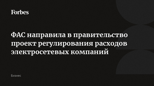 ФАС направила в правительство проект регулирования расходов электросетевых компаний