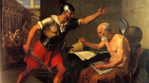 Вот ещё одна версия о смерти Архимеда. Однако имеет место на существоване и такая весия: - Не трогай мои чертежи! - взревел Архимед, и римский центурион, случайно наступивший калигой на неровную линию, недоуменно отшатнулся. Потом внимательнее посмотрел на ученого и сдвинул шлем на затылок, открыв потный лоб с прилипшими темными волосами. - Ты понимаешь, что я могу тебя убить? - громко спросил он, пытаясь перекричать треск пламени и крики местных жителей. - Там уже убивают, кстати говоря. Центурион ткнул гладиусом себе за плечо...