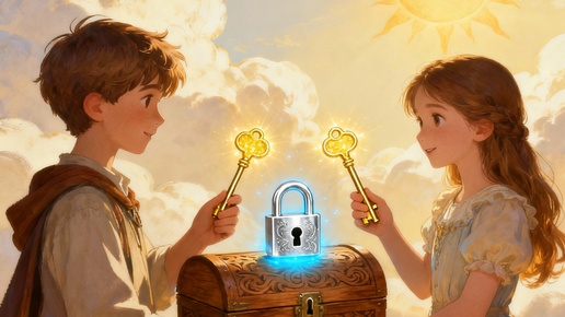 Жил-был Мальчик Валера, который хотел передать Девочке Кате тайное признание в любви. Проблема была проста: Валера хотел, чтобы послание дошло только до Кати, и никто, включая любопытного почтальона или маму Кати, не смог его прочитать. 🤫📬 Сначала Валера придумал положить письмо в железную коробку, закрыть её на замок и отправить Кате. Но чтобы открыть замок, Кате нужен такой же ключ, как у Валеры. В классической криптографии это называется симметричный шифр: один и тот же ключ используется для шифрования и для расшифровки...