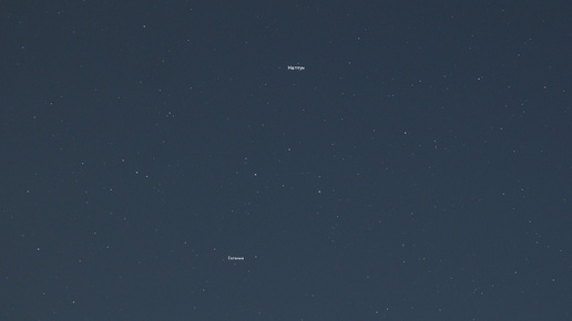 Нептун располагается левее и выше характерной цепочки из 3 хорошо заметных звёзд 5-5,5 m из созвездия Рыб. А астероид Главного пояса между Марсом и Юпитером (45) Евгения находится ниже и как раз на продолжении линии этой звёздной троицы. В тоже время правее Сатурна сейчас виден ещё более яркий астероид (194) Прокна 9,6 m, её я наблюдал чуть ранее визуально в телескоп (D=200 мм)...