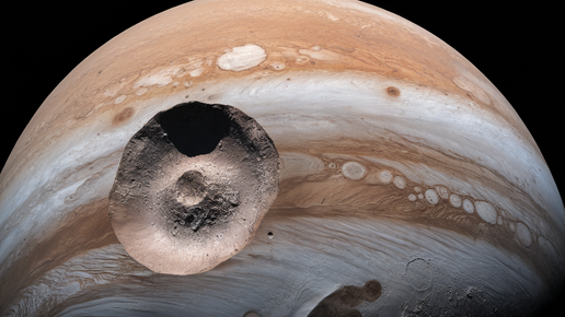 Ганимед, самый большой спутник в нашей Солнечной системе, возможно, резко отклонился от своей оси в результате удара колоссального астероида четыре миллиарда лет назад, говорится в новом исследовании Университета Кобе. Удар астероида диаметром более 300 км — в 20 раз больше, чем тот, что уничтожил динозавров, — разрушил поверхность луны и создал гравитационный дисбаланс, который влияет на Ганимед и по сей день. Открытая Галилеем в 1610 году, Ганимед больше Меркурия и является единственной луной, обладающей магнитным полем...