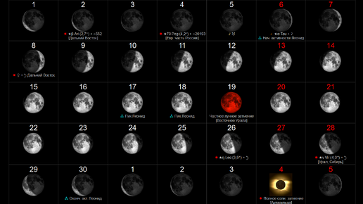 Не за горами ноябрь, и самое время обратиться к "небесной" части нашего канала - астрономии. Представляю астрономический календарь на этот месяц, который обычно не изобилует ясными ночами. При этом ноябрь 2021 года богат на разного рода астрономические события. Но сперва расскажу о самой идее и условных обозначениях. Календарь сделан в лаконичном виде, и при желании его можно распечатать в формате А3, А4 или выложить на рабочий стол компьютера (ссылки в конце статьи). На каждое число месяца показана...