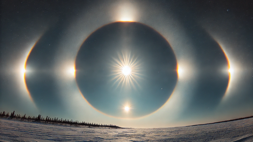 Фото названо: "Утреннее гало в Озерске" Между тем, у нас в школе была астрономия, это было в 10 классе, в 1970. А потом её убрали из школьной программы ((( Понизили горизонт развития школьников. А ведь на фото не гало, а паргелий! Гало я наблюдала и вокруг Солнца (сквозь редкие облака), и вокруг Луны. Это своеобразная радуга или её кусочек. В небе. Если над горизонтом появляется такая "радуга" с появлением дополнительных "солнц" - это уже паргелий...