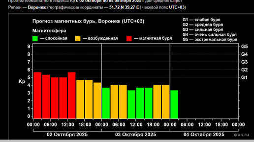 В четверг, 2 октября, в Воронежской области наблюдается магнитная буря силой G2 (средняя буря). Сегодня Землю геошторм накрыл с начала суток, с 00:00 часов. Он отступит к трем часам дня. Однако метеочувствительные воронежцы могут себя почувствовать нехорошо и завтра, 3 октября, – магнитосфера будет беспокойной почти весь день. Следующее небольшое геовозмущение специалисты Лаборатории солнечной астрономии ИКИ РАН прогнозируют в Воронежской области 6, 12, 13, 26, 30 октября. Напомним, что крайне чувствительные...