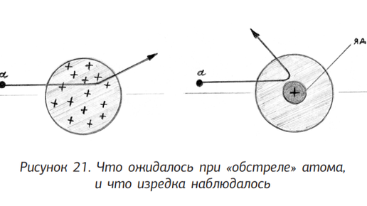 Поначалу о строении атомов было известно одно: внутри них есть электроны (их окончательное открытие Дж. Дж. Томсоном состоялось в 1897 году). А что еще? Это должно быть нечто положительно заряженное и тяжелое, обеспечивающее практически всю массу атома. До 1911 года единственной гипотетической моделью атома была модель Томсона. Он предположил, что положительный заряд и масса равномерно распределены по объему атома. Электроны «вкраплены» в эту массу, подобно изюму в тесте (модель так и называли: «пудинг с изюмом»)...