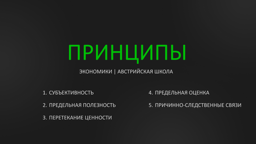 В экономике существуют различные школы со своими принципами, акцентами и т.д. Австрийская школа экономики появилась в 1871 с выходом труда Карла Менгера "Основания политической экономии". Он отвергал трудовую теорию стоимости, согласно которой стоимость на товар обусловлена количеством ресурсов, затраченных на производство товара. Австрийская школа впервые сделала акцент на изучение психологических особенностей поведения потребителей. Ниже представлены 5 принципов Австрийской школы экономики. Это не учебник по экономике, у меня нет экономического образования...