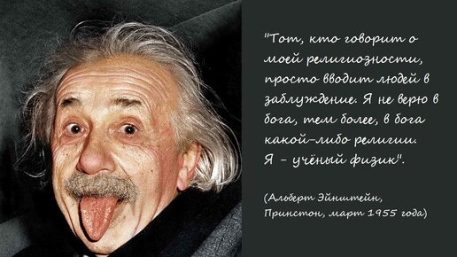 Всему миру известна фотография Альберта Эйнштейна, где он показывает свой язык. По одной из версий, Эйнштейн признался своему другу, что этот жест адресован всему человечеству. Как бы там ни было изначально, но, в конечном итоге именно так и вышло. Его жест – послание всем потомкам, всему человечеству. Эйнштейн – фигура не однозначная. О нём пишут разное. Неоспоримо одно – он мировая величина в науке. И этим, безусловно, не преминули воспользоваться религиозные деятели и простые боговеры для своей выгоды...