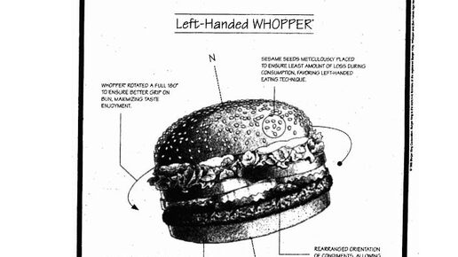 Гамбургер для левшей 🍔 1 апреля 1998 года сеть американских закусочных Бургер Кинг опубликовала в газете USA Today сенсационное объявление. В нём говорилось, что теперь в БК появились уникальные гамбургеры, созданные специально для левшей. Компания утверждала, что таким образом она стремится уравнять 32 миллионов американских левшей с остальными гражданами США. В описании «леворукого гамбургера» упоминались традиционные ингредиенты: котлета, салат, помидоры и другие. Однако все они были уложены...