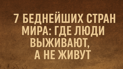 В современном мире, где одни государства летают в космос и развивают искусственный интеллект, другие остаются в условиях крайней бедности, где выживание — ежедневная борьба. В этой статье мы расскажем о семи беднейших странах мира. Мы рассмотрим уровень жизни, причины бедности и перспективы на будущее. Счёт пойдёт от седьмого места к первому, чтобы вы узнали, какая страна считается самой бедной на планете. --- 💰 ВВП на душу населения (ППС): около 1 300 долларов Нигер — одна из самых бедных стран Африки и мира...