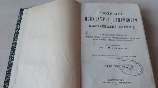 Журнал «Обозрение психиатрии, неврологии и экспериментальной психологии» был одним из первых специализированных журналов по психоневрологии. Основателем и главным редактором являлся Владимир Михайлович Бехтерев. Бехтерев прежде всего был известен, как невропатолог, психиатр, морфолог, физиолог, психолог и основатель отечественной школы психоневрологов. Помимо этого, был тайным советником, генерал-лейтенантом медицинской службы Русской императорской армии. Современники отмечали его блестящие способности, пытливый ум, настойчивость и трудоспособность...