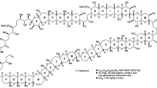 Природа не устает удивлять сложностью своих творений и решений, в том числе и с точки зрения химического разнообразия биологически активных соединений, к которым, безусловно, необходимо отнести и токсины. В целом все токсины можно разделить на белковые и небелковые. К белковым, очевидно, относят протеиновые структуры разной сложности и уровня организации. К наиболее крупным молекулам такого класса относится известный ботулотоксин А, молекулярная масса которого в комплексе с геммаглютинином достигает около 900 кДа (то есть 900 000 атомных единиц массы, а...