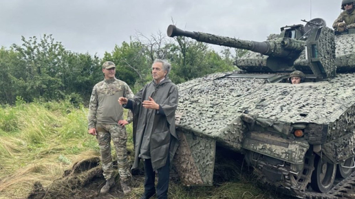 Прекрасная, без преувеличения, фотография с той стороны фронта: французский философ Бернар-Анри Леви (про которого я на днях писал), прозванный Всадником Апокалипсиса (потому что он активно разжигал войны в Югославии, Ливии, Сирии, Украине и ещё туевой хуче стран), проводит магический обряд вызывания Сатаны агитацию на фоне шведской БМП украинской армии. Всего Швеция поставила Украине 50 своих БМП. Пишут, что это та самая CV-9040C, которая была недавно подбита и взята в боях в качестве трофея...
