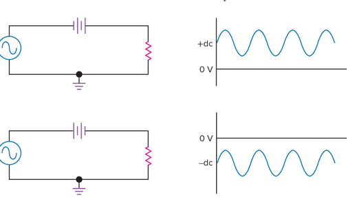 Переход от первого курса по электротехнике к курсу по электронике может вызвать некоторую первоначальную путаницу. Одной из причин этого является то, что концепции цепей постоянного (DC) и переменного (AC) тока часто рассматриваются отдельно на первом курсе. Позже студенты сталкиваются с электронными схемами, в которых присутствуют как постоянный, так и переменный ток. Этот раздел поможет облегчить этот переход. На рис. 1-9 показаны примеры цепей, содержащих как постоянный, так и переменный ток....