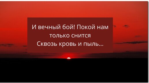 Строка про "вечный бой" изначально принадлежит Блоку, в его стихотворении-цикле"На поле Куликовом" (1908): И вечный бой! Покой нам только снится Сквозь кровь и пыль… Летит, летит степная кобылица И мнет ковыль… Агрессор - это дикий монгол, кочевник, "татарин". Это его "степная кобылица" несется вскачь и не дает покоя мирной русской душе, которая в данном произведении защищается. И поэтому русское знамя у Блока - "святое". Несмотря на то, что Блок, как и намного позже Бродский, делает акцент на...